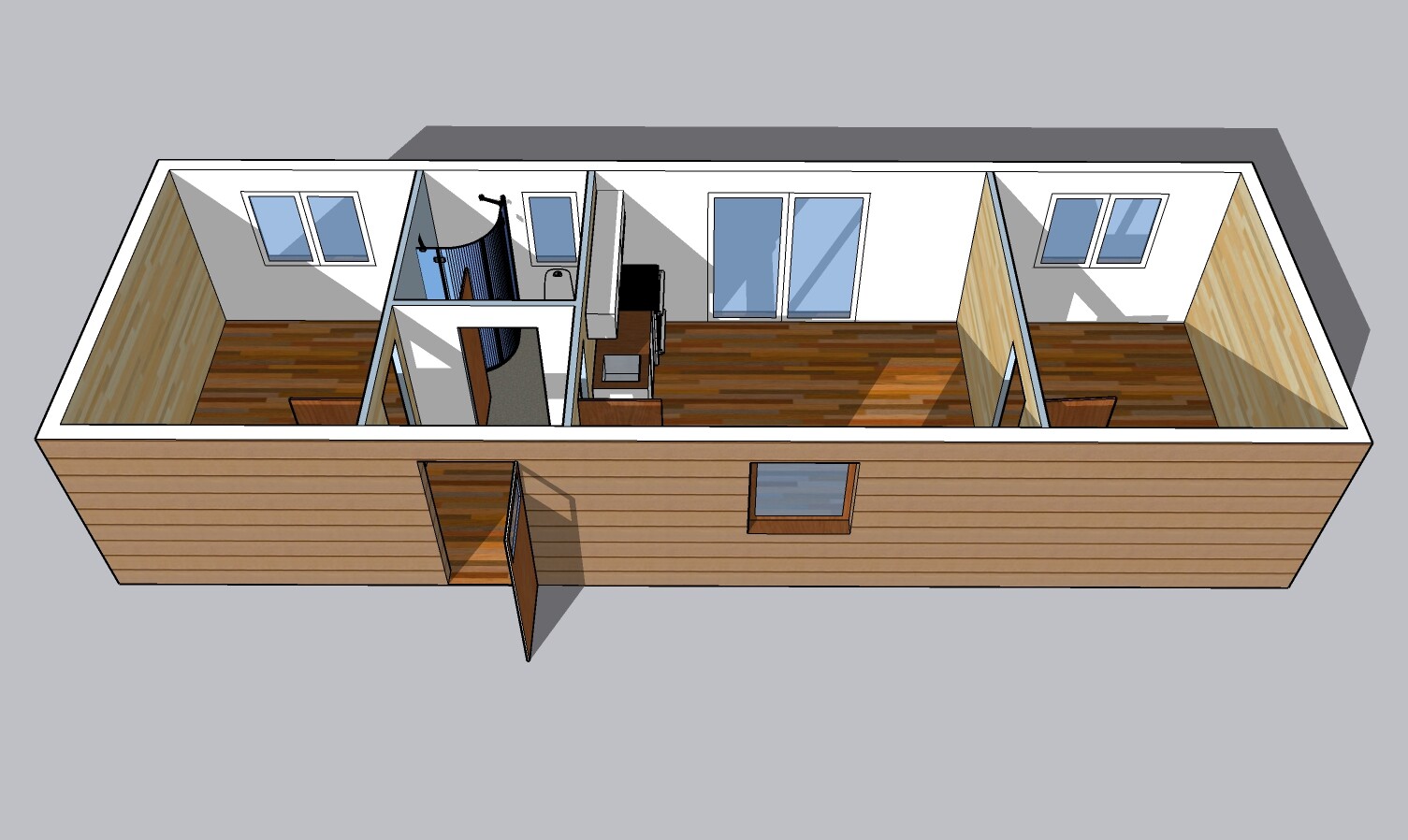 | Výbava: | Nový mobilheim, dřevěný obklad, vnitřní stěny sádrokarton a dřevěný obklad, strop dřevěný obklad, kuchyně, (dřez, digestoř, varná deska s troubou), koupelna (WC, umyvadlo, sprchový box, bojler 80l) |