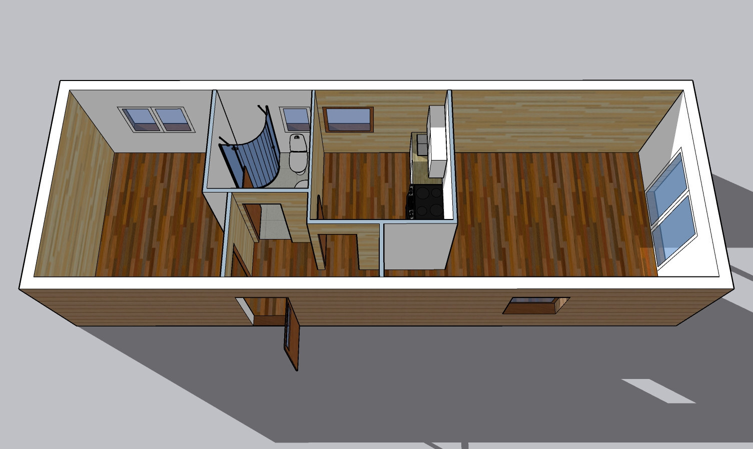 | Layout: | 1 ložnice, obývací pokoj, kuchyně, koupelna, WC |