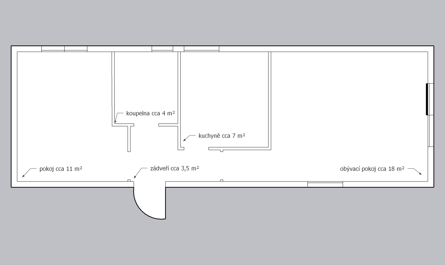 | Layout: | 1 ložnice, obývací pokoj, kuchyně, koupelna, WC |
