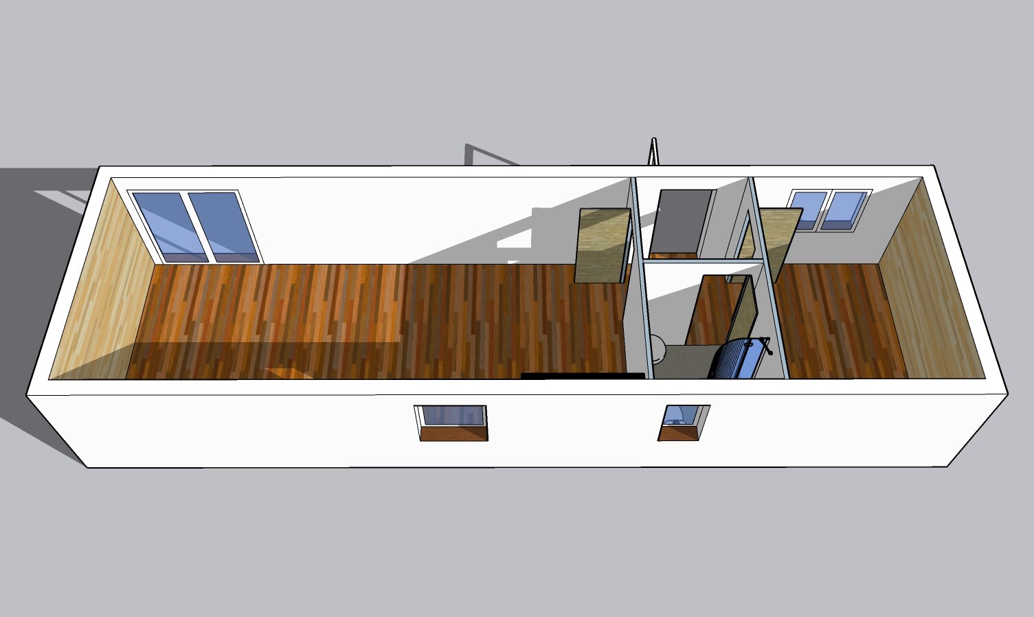 | Výbava: | Nový mobilheim, fasádní lepidlo, vnitřní stěny sádrokarton a dřevěný obklad, strop dřevěný obklad, kuchyně (dřez, digestoř, varná deska s troubou), koupelna (WC, umyvadlo, sprchový box, bojler 80l) |