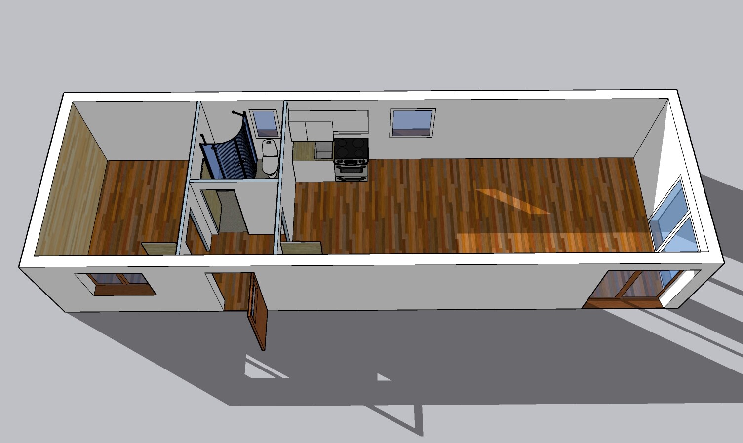 | Layout: | 1 bedroom, living room with kitchenette, bathroom, toilet |