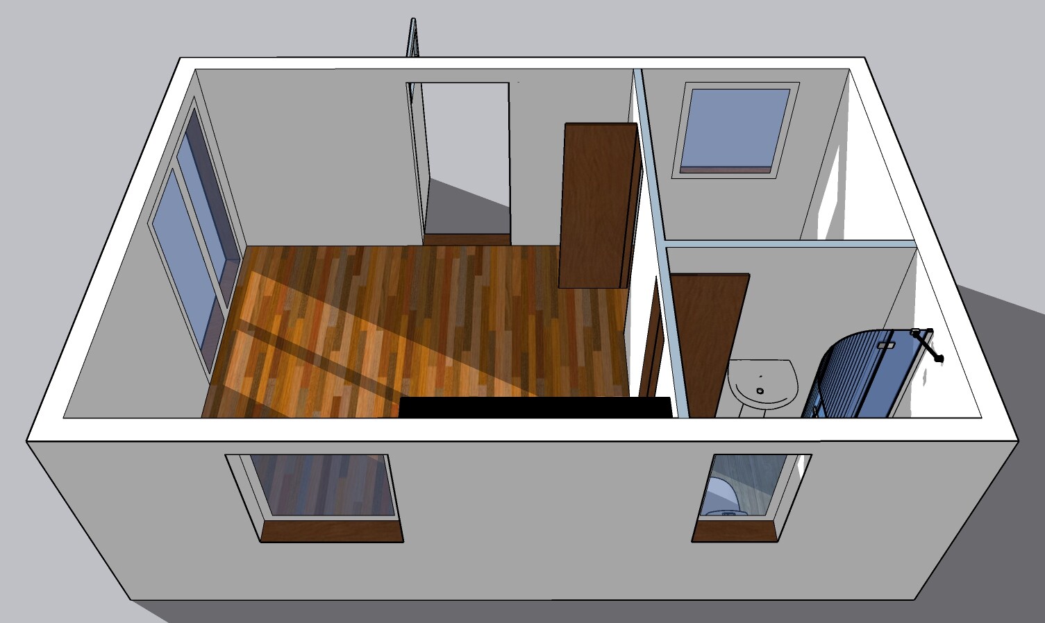 | Layout: | 1 ložnice, obývací pokoj s kuchyňským koutem, podkroví, koupelna, WC |