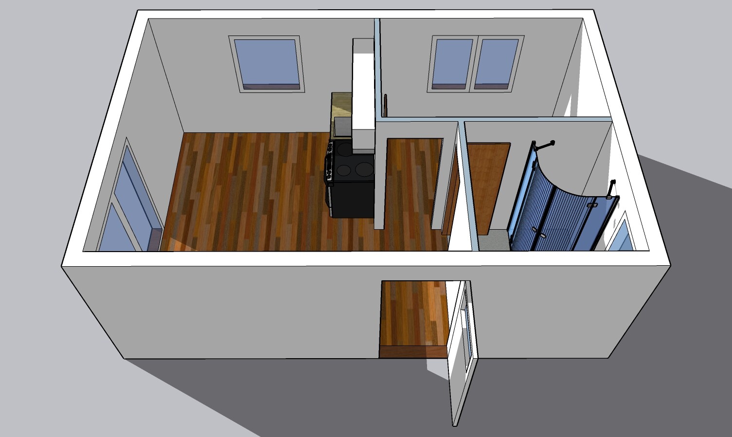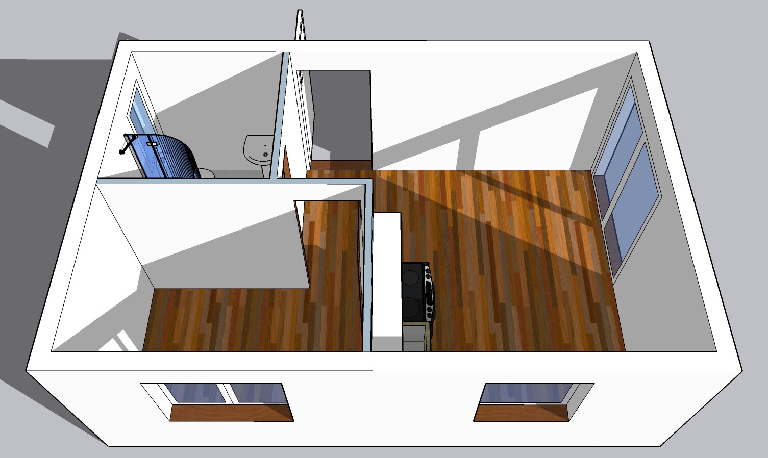 | Layout: | 1 bedroom, living room with kitchenette, bathroom, toilet |