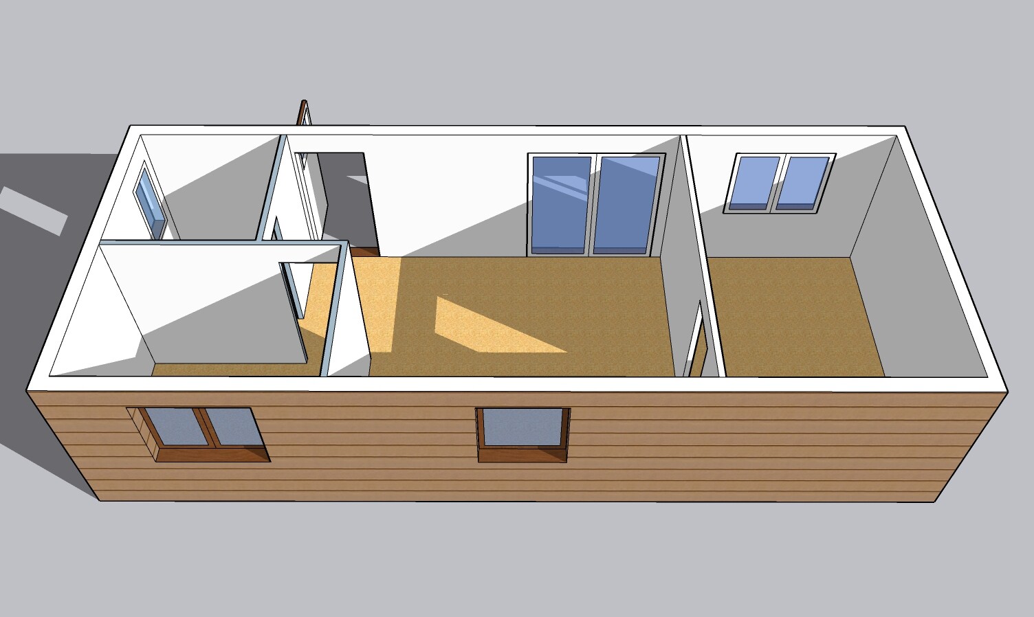 | Výbava: | Nový mobilheim jako holobyt, dřevěný obklad, vnitřní stěny sádrokarton, strop dřevěný obklad, možnost nainstalování podlahy, obložek a vnitřních dveří, koupelnového vybavení, kuchyně |