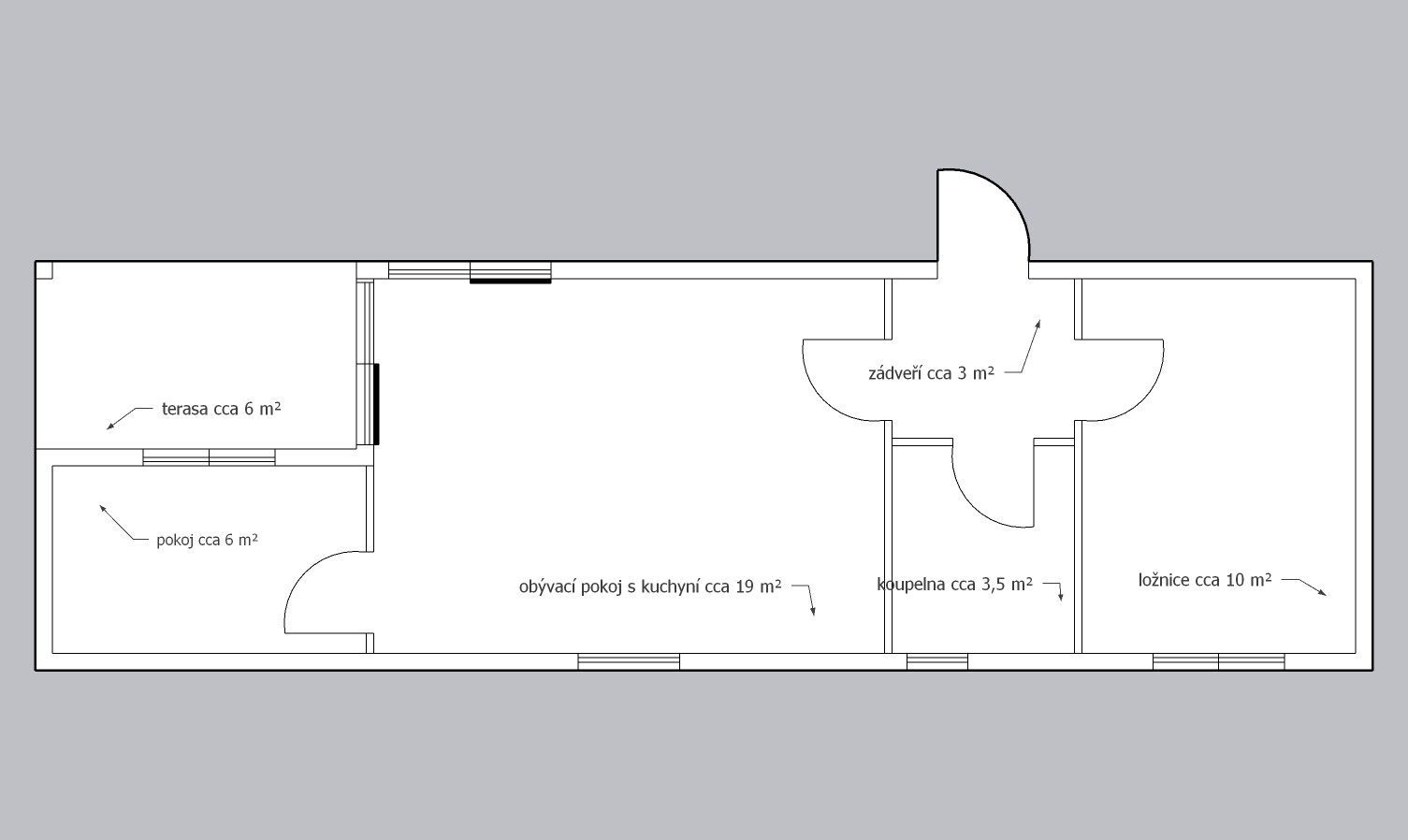 | Size: | 13,19 x 4,19m (cca 56m2) |
