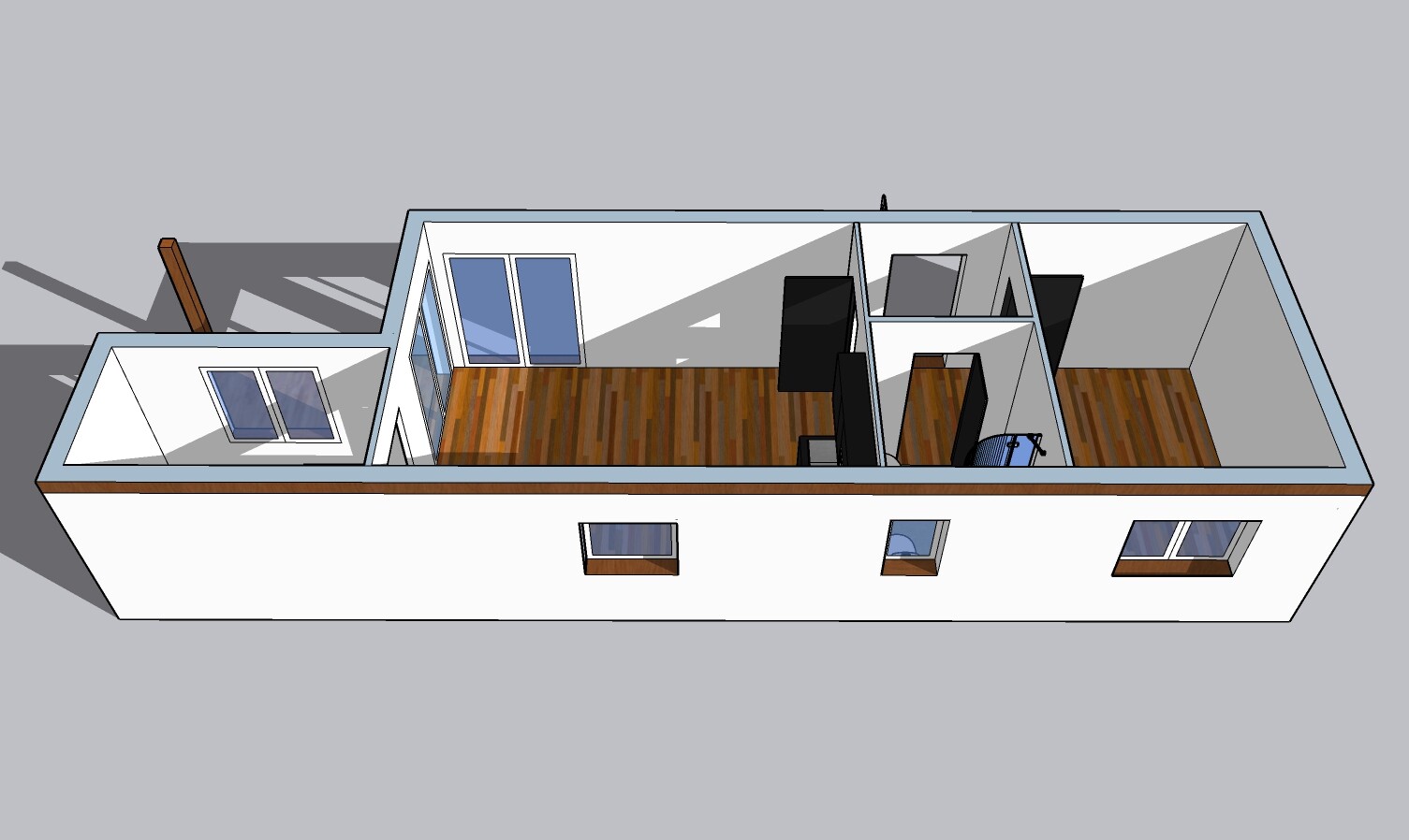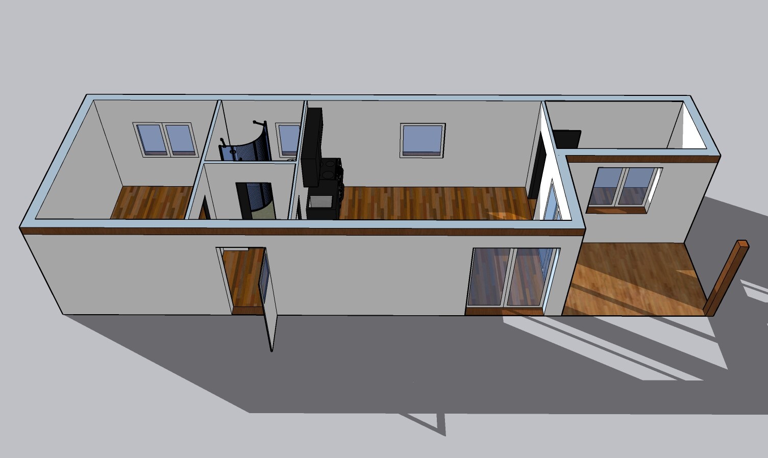 | Výbava: | Nový mobilheim, fasádní lepidlo s dřevěným obkladem, vnitřní stěny sádrokarton, strop dřevěný obklad, kuchyně (dřez, digestoř, varná deska s troubou), koupelna (WC, umyvadlo, sprchový box, bojler 80l) |