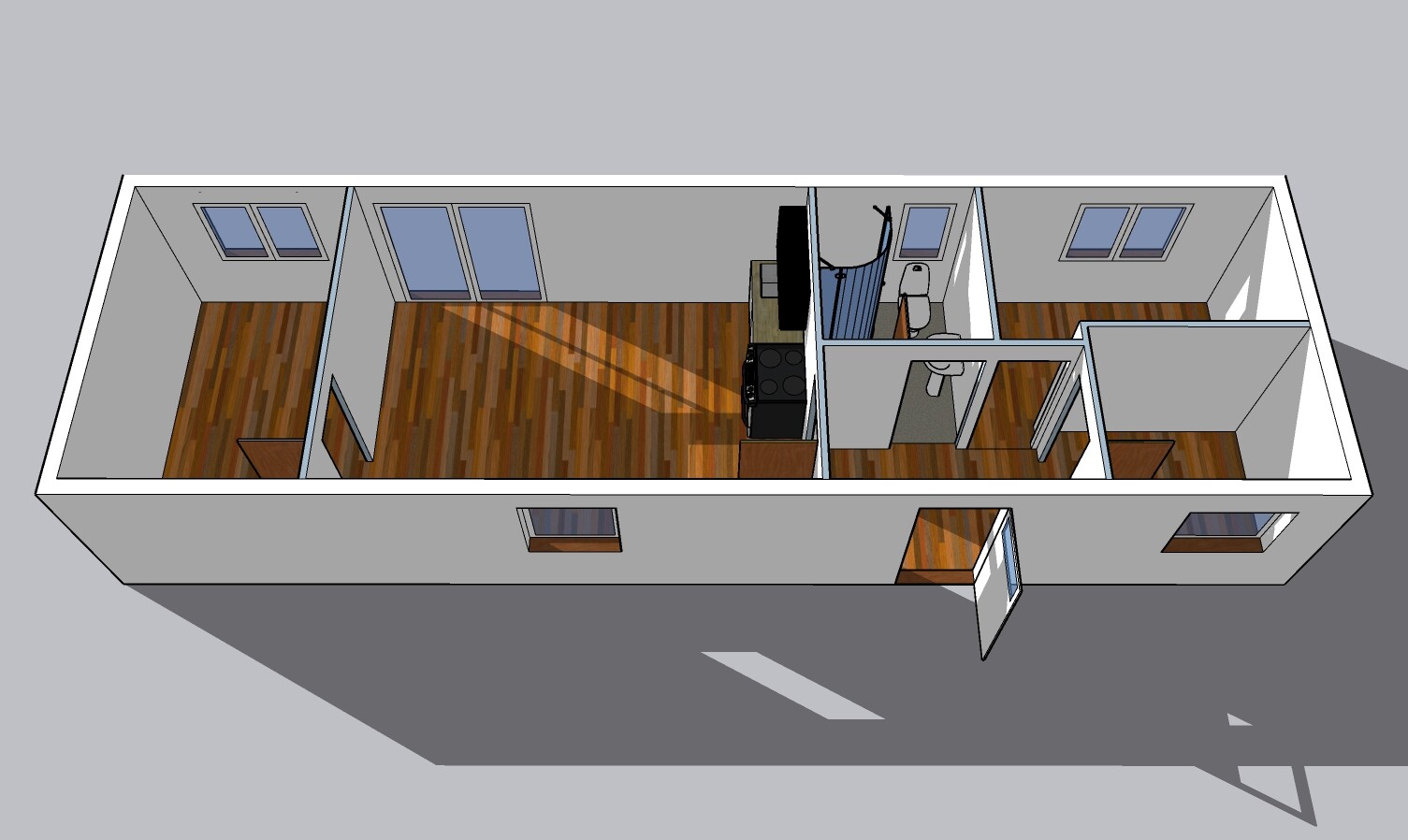 | Výbava: | Nový mobilheim, fasádní lepidlo, vnitřní stěny sádrokarton, strop dřevěný obklad, kuchyně (dřez, digestoř, varná deska s troubou), koupelna (WC, umyvadlo, sprchový box, bojler 80l) |