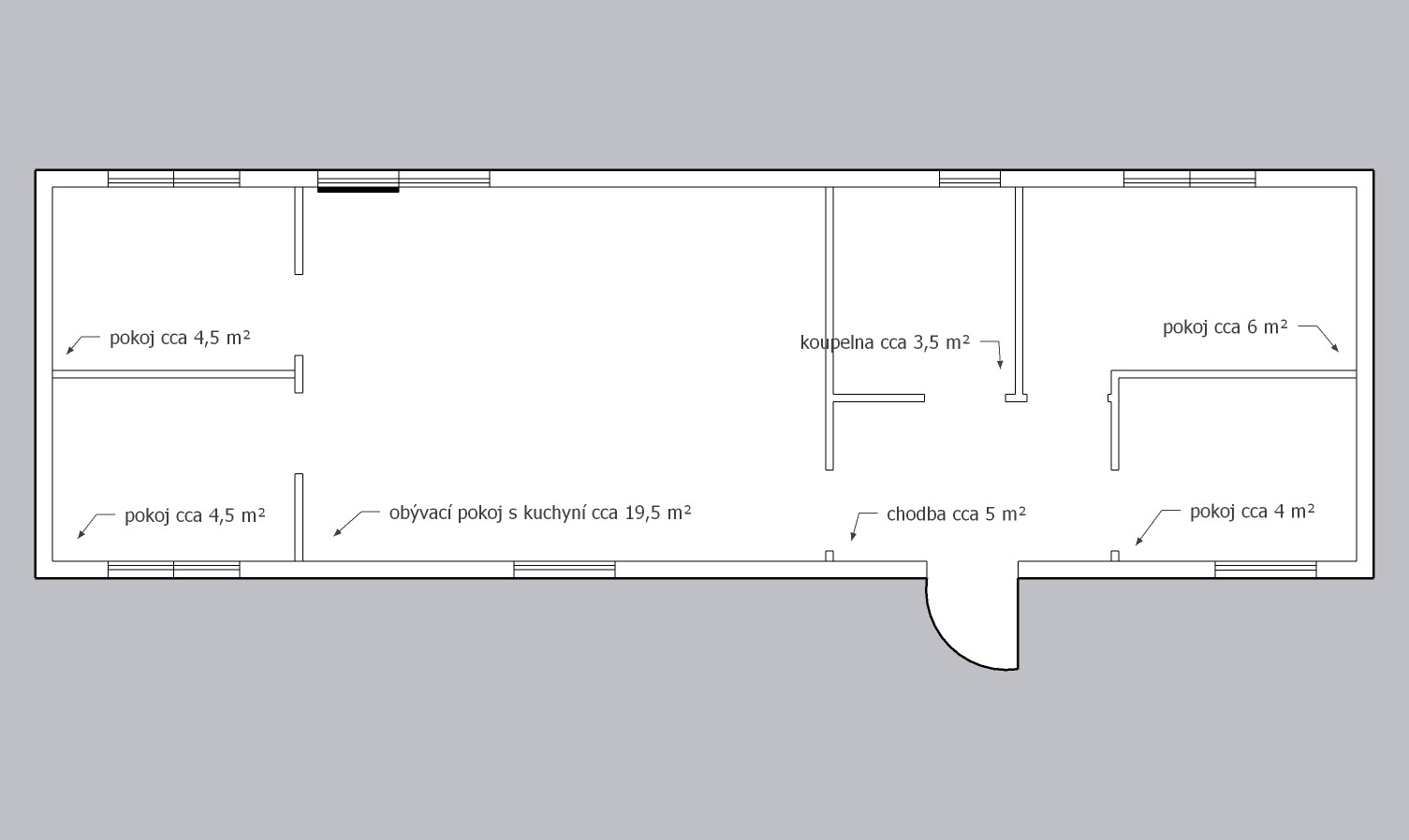 | Vytápění: | Rozvod pro elektrická topidla, možnost instalace krbových kamen nebo klimatizace |