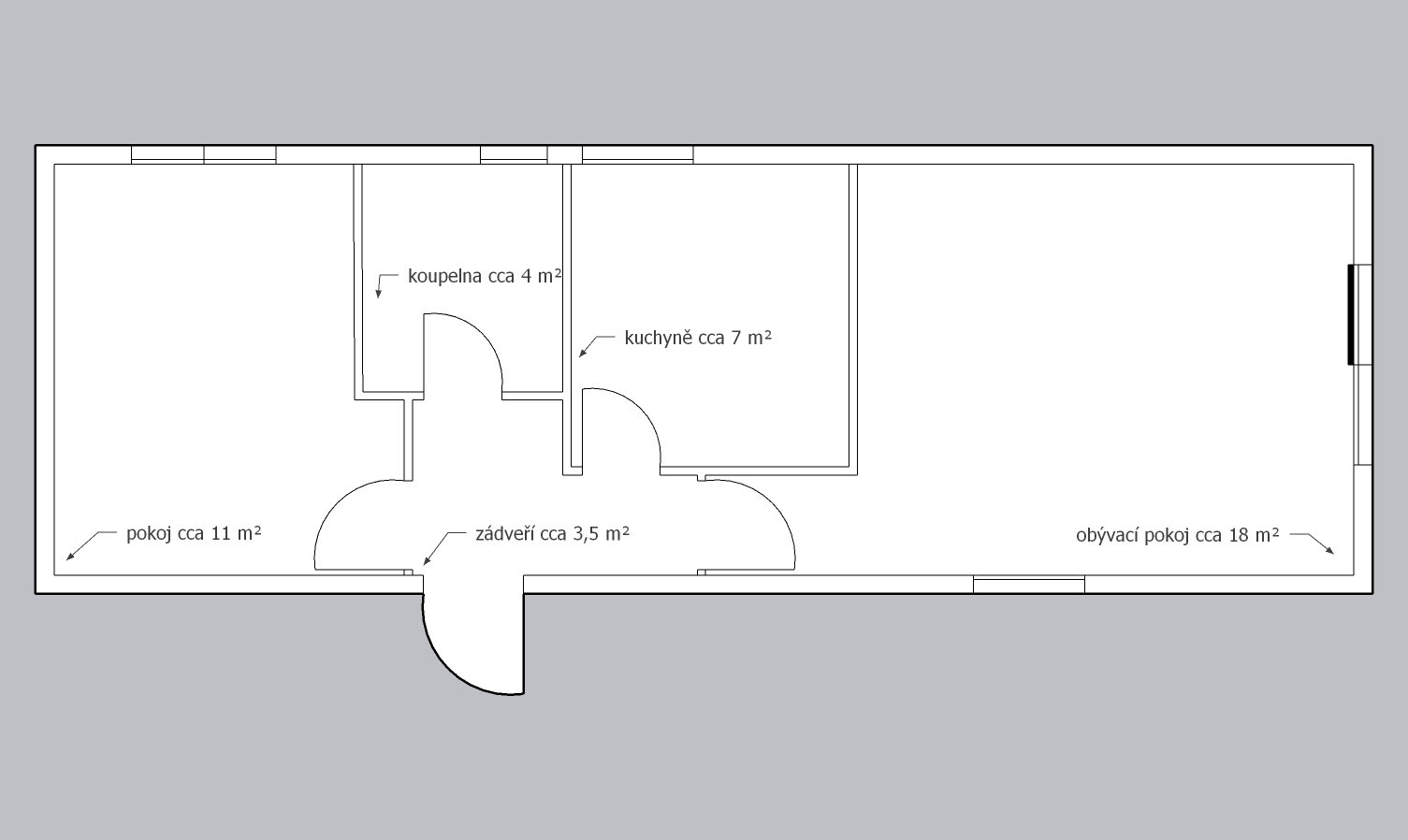 | Layout: | 1 ložnice, obývací pokoj, kuchyně, koupelna, WC |