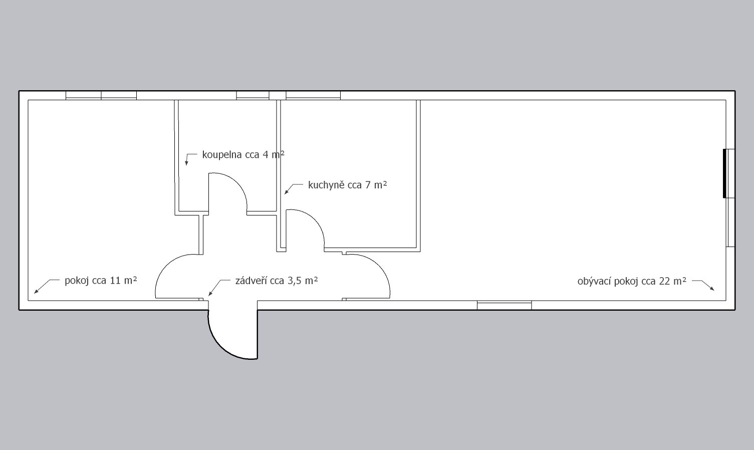 | Layout: | 1 ložnice, obývací pokoj, kuchyně, koupelna, WC |