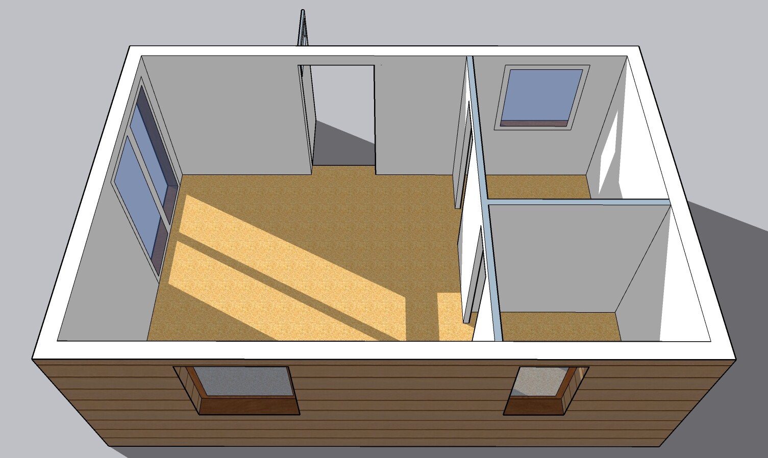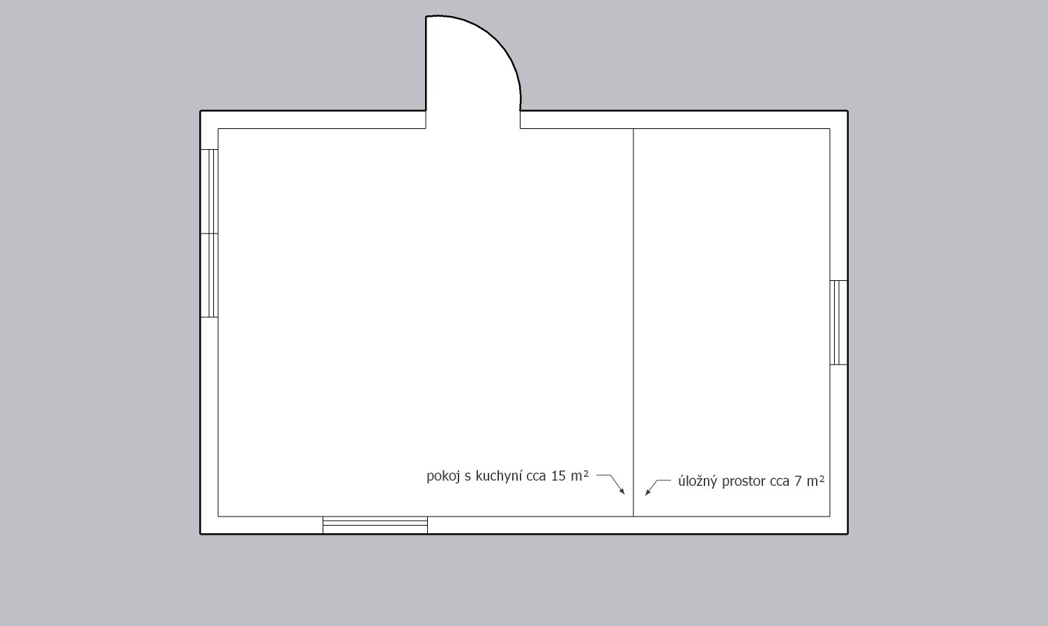 | Layout: | 1 ložnice, obývací pokoj s kuchyňským koutem, podkroví, koupelna, WC |