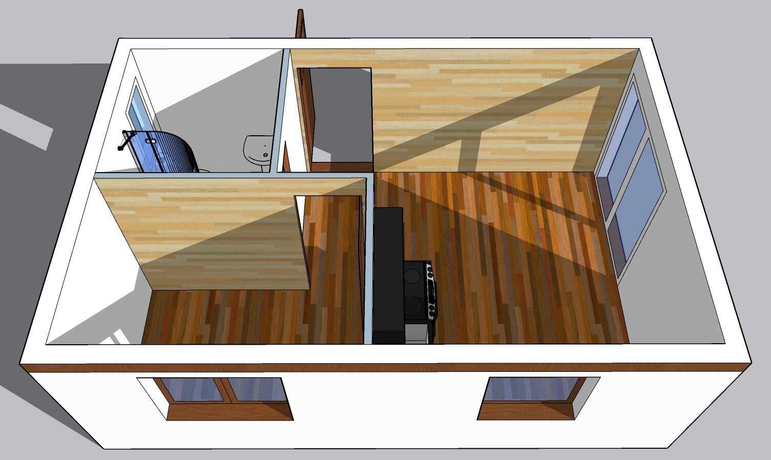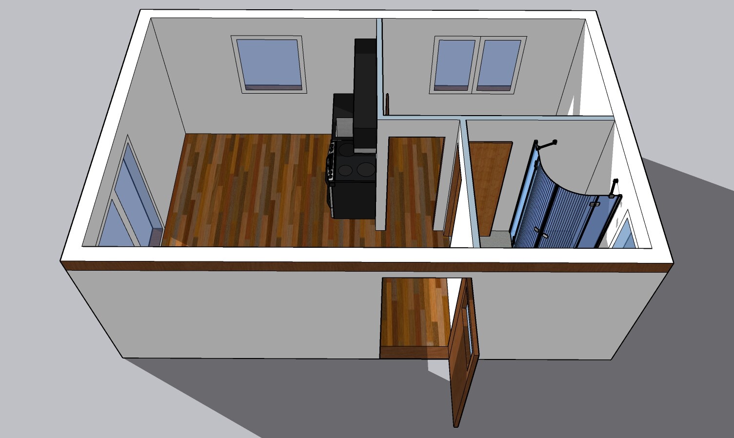 | Layout: | 1 bedroom, living room with kitchenette, bathroom, toilet |