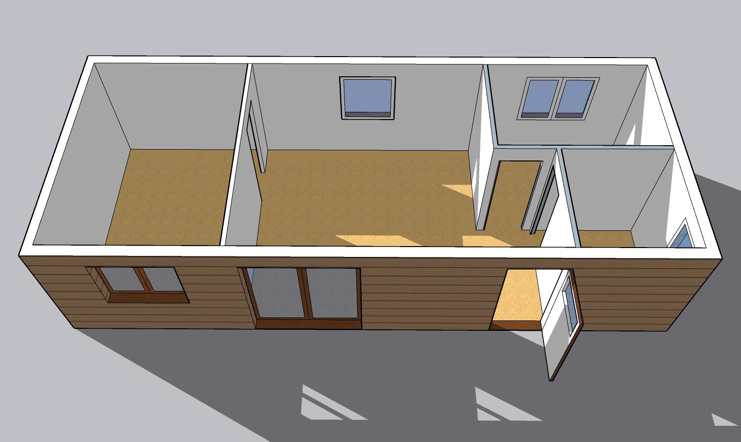 | Výbava: | Nový mobilheim jako holobyt, dřevěný obklad, vnitřní stěny sádrokarton, strop dřevěný obklad, možnost nainstalování podlahy, obložek a vnitřních dveří, koupelnového vybavení, kuchyně |