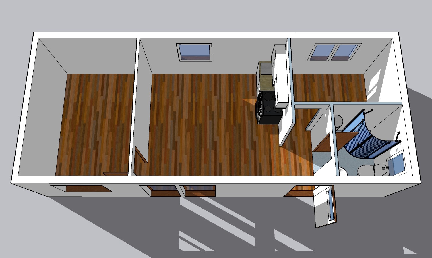 | Layout: | 2 bedrooms, living room with kitchenette, bathroom, toilet |